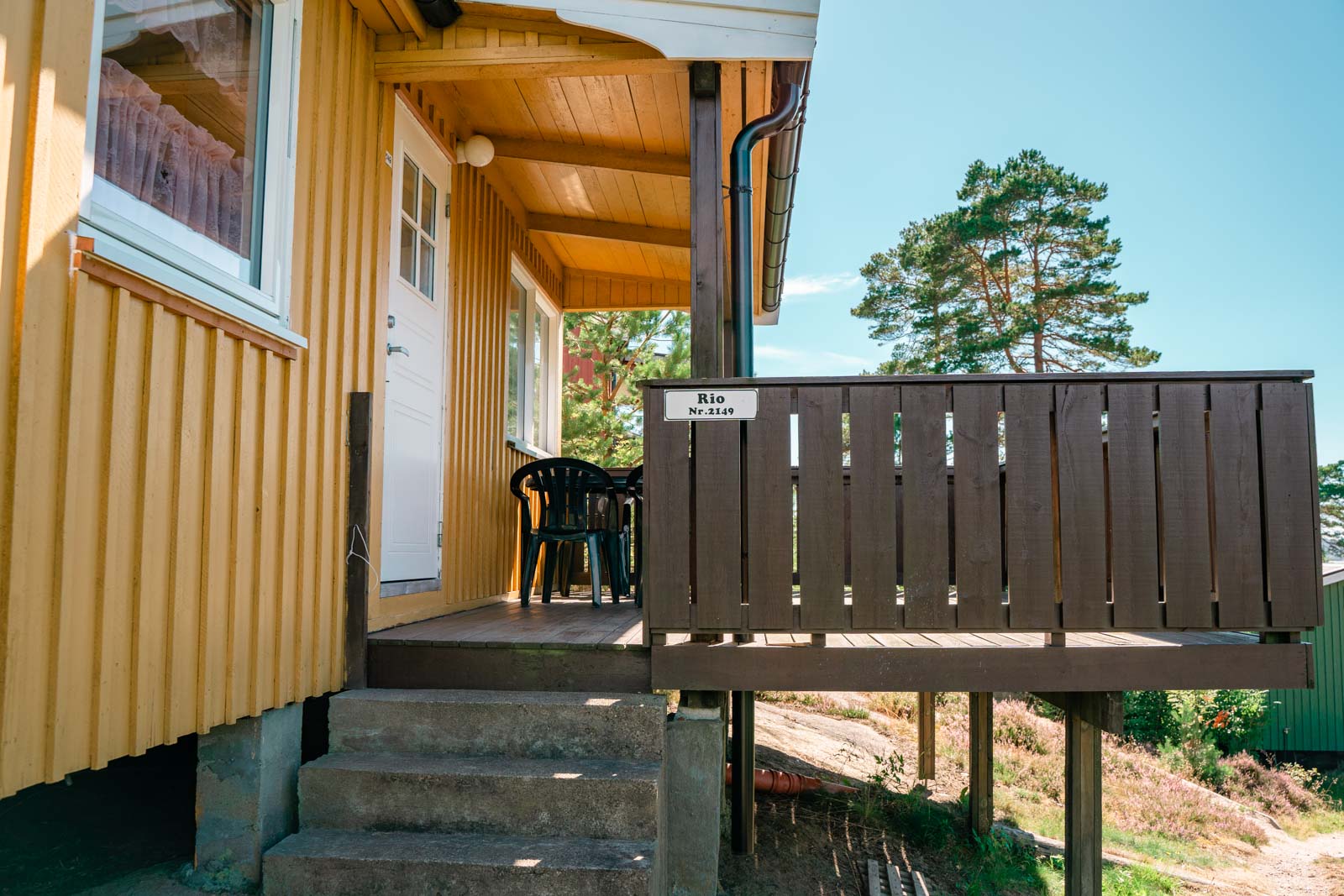 Rio er en hyggelig gul hytte på fjellet, rett ovenfor stranden, med kort vei til lekeplass, strand og kiosk.